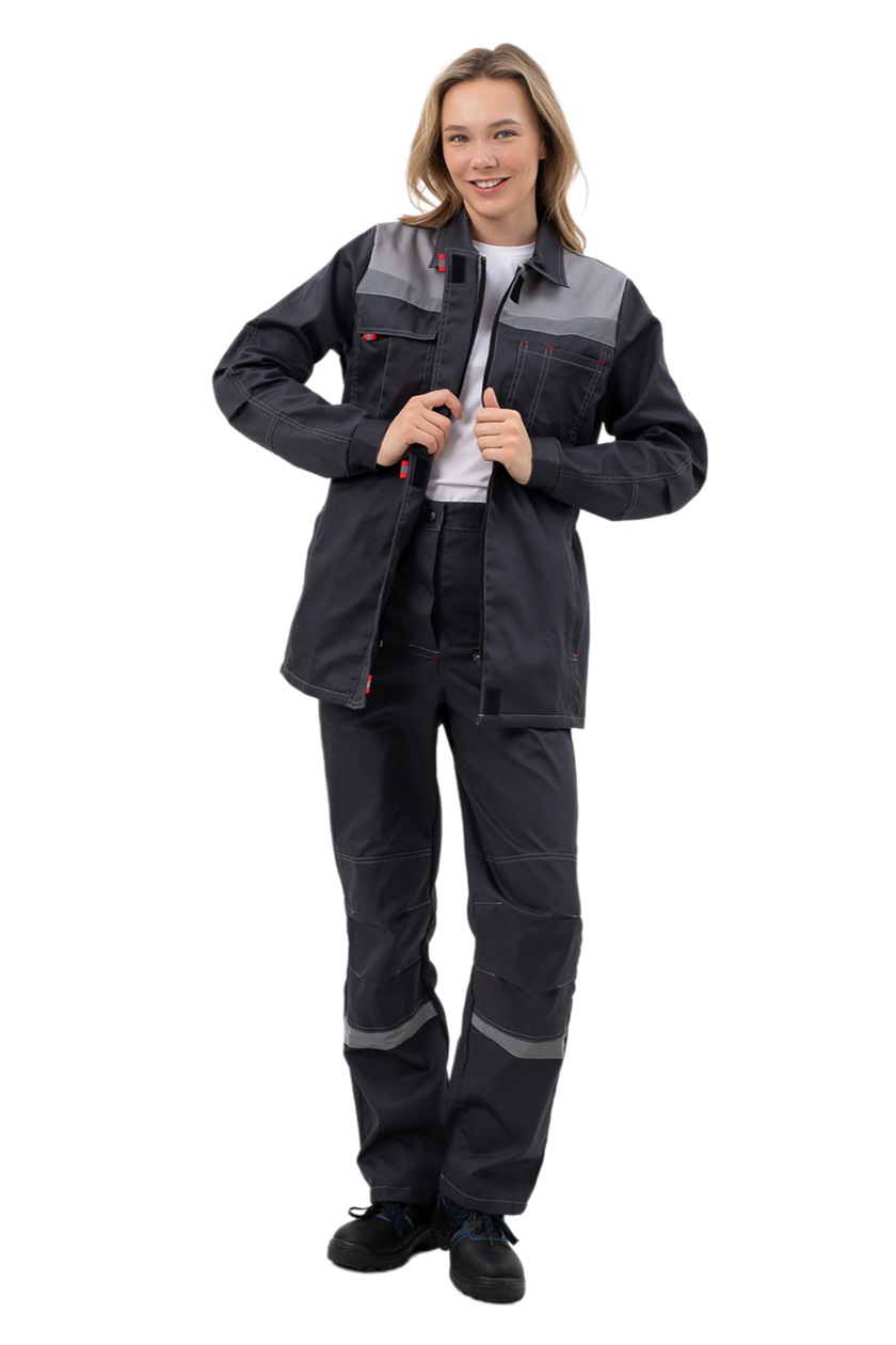 Костюм с лентой ФИО что позволяет идентифицировать костюм работника. Усилительные накладки для защиты костюма от истирания: в зоне локтя и колена на брюках.